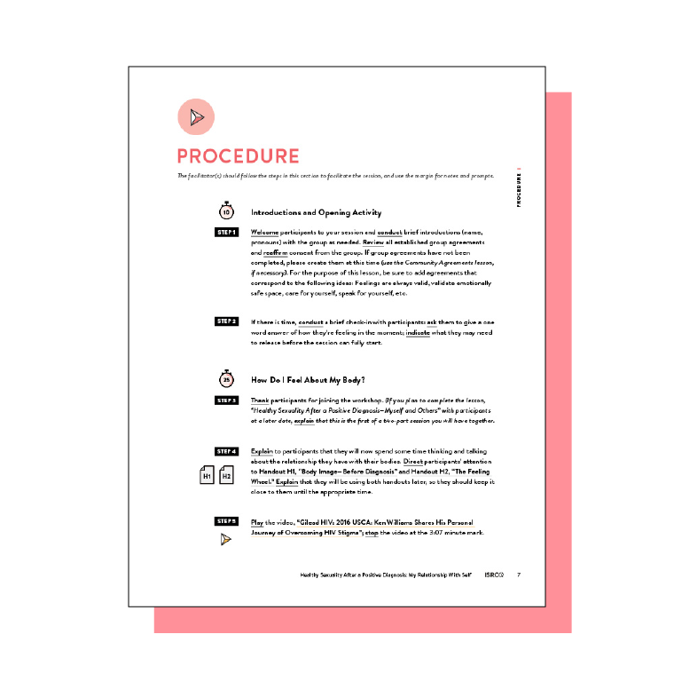 This section is a step-by-step guide for your session. Icons provide prompts for time limits, relevant handouts, slides, and facilitator resources. Wide margins allow you to make your own notes.